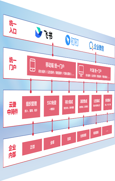 对协作平台提供支持服务,,支持企业应用与协作平台对接,,,,包含组织同步、、、消息集成、、、、待办集成等。。。。支持目前主流的协作平台:钉钉、、、企微和飞书。。。。
